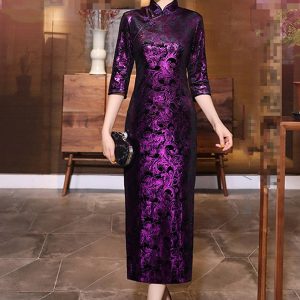 Sườn xám nhung trơn tay lỡ