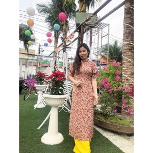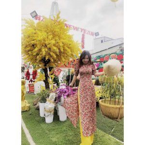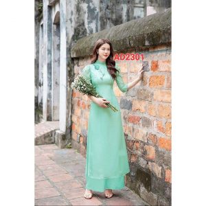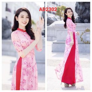 AD2181 Set bộ áo dài truyền thống cổ trụ hoa nhí cách tân tay phòng