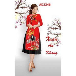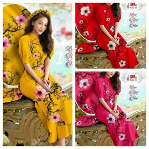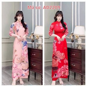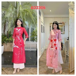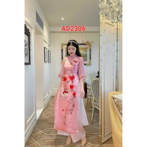 AD2194 Set áo dài truyền thống cách tân cổ trụ tay phòng họa tiết hoa