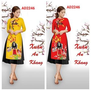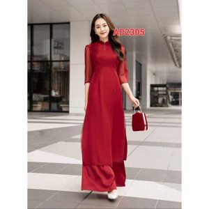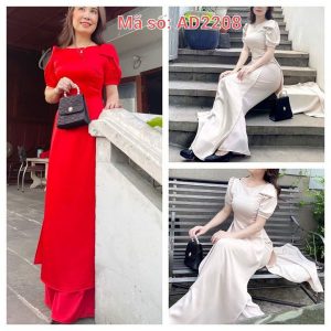 AD2208 Set áo dài truyền thống tay ngắn cổ nơ
