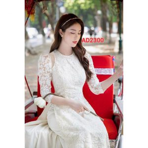 AD2300 Set bộ áo dài truyền thống ren cổ tròn hở vai 4 tà