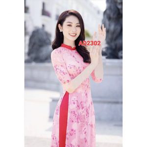AD2302 Set bộ áo dài truyền thống cổ trụ 4 tà in hoa nổi